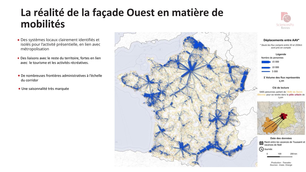 Cette carte vous a déjà été présentée par Thierry Mallet, mais je la trouve particulièrement intéressante. Si on regarde notre “ corridor Ouest ”, contrairement à l’arc méditerranéen, on n’a pas de continuum sur cette façade ouest-atlantique, on est vraiment sur des systèmes locaux qui sont clairement identifiés, qu’on peut isoler et qui vont être très en lien avec l’activité présentielle.