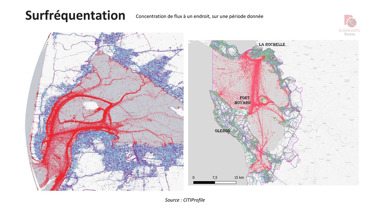 Si on veut illustrer un peu cette question de (sur)fréquentation, on a une concentration maximale d’un point de vue très local des déplacements.