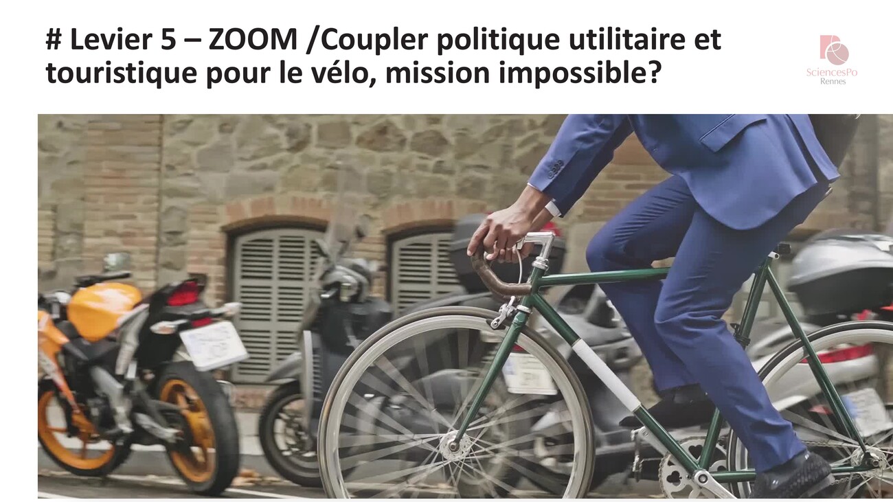 J’en termine avec un cinquième et dernier levier, l’essor du vélo. La Bretagne où nous sommes présents aujourd’hui, nous montre une voie intéressante. Lors de la première table ronde, on a vu qu’il pouvait y avoir une opposition entre résidents du territoire et touristes. Et ce qui est intéressant dans la politique qui a été menée en Bretagne à la fois par la Région mais aussi par les départements et les EPCI, c’est le fait de coupler une politique autour du vélo pour des usages utilitaires (c’est-à-dire se rendre au travail, se rendre dans les commerces) et des usages touristiques. Pendant très longtemps, on a développé le vélo pour favoriser l’attractivité touristique. Et si on regarde la politique de l’Ille-et-Vilaine, et plus récemment du Morbihan, on a un développement de pistes cyclables entre bourgs de manière à favoriser cette pratique pour les usages quotidiens. C’est une façon intéressante de réduire les tensions autour de ces questions et d’offrir une solution moins carbonée et favorable à la santé pour tous.