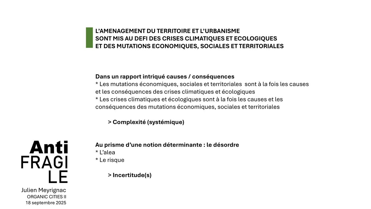 Qu’est-ce qu’un territoire antifragile ? Quand j’ai commencé l’urbanisme il y a 30 ans, les problématiques majeures qu’on rencontrait lorsqu’on élaborait des documents de planification, des Plans d’Occupation des Sols (POS), c’étaient des problématiques de capacité et de réceptivité. Le territoire était un substrat, et on ne se préoccupait pas de grand-chose d’autre.