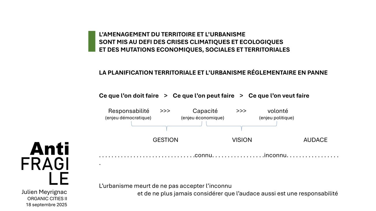 La planification territoriale et l’urbanisme réglementaire sont en panne parce que l’urbanisme meurt de ne pas accepter l’inconnu, et de ne plus considérer que face à l’incertitude, l’audace est aussi une responsabilité.