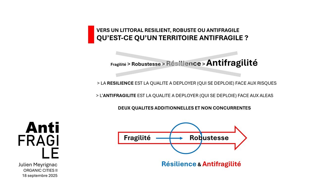 L’antifragilité, convoque, je l’ai dit, la vision, la volonté et la mobilisation. C’est très important puisque dans le cas des espaces littoraux où on a des aléas croisés, de grandes incertitudes, des désordres multiples, convoquer la résilience selon la définition que je viens de donner, qui est parfaitement sujette à caution selon moi, n’est pas suffisant.