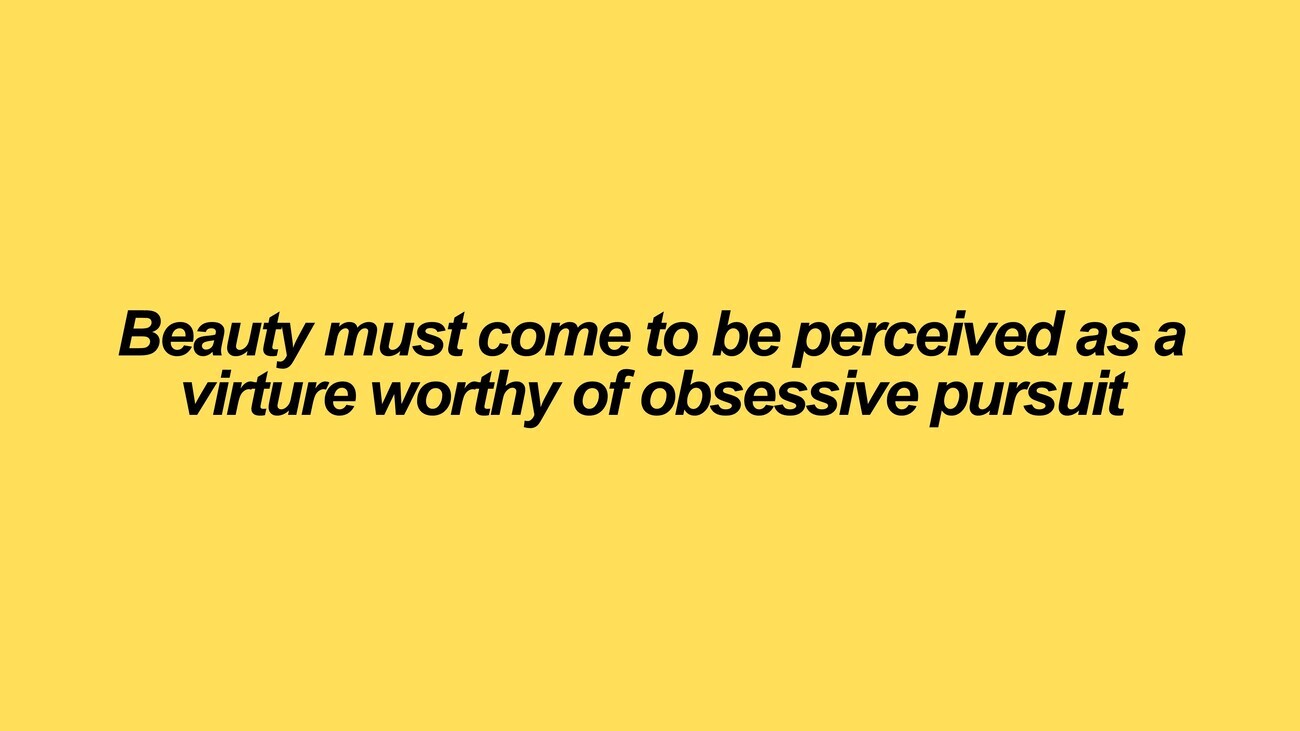 But in order to bring this world about, we need to make a choice. Beauty must be perceived as a virtue and a virtue that’s worthy of obsessive pursuit. It doesn’t happen spontaneously, and we can’t build it if we don’t value it.