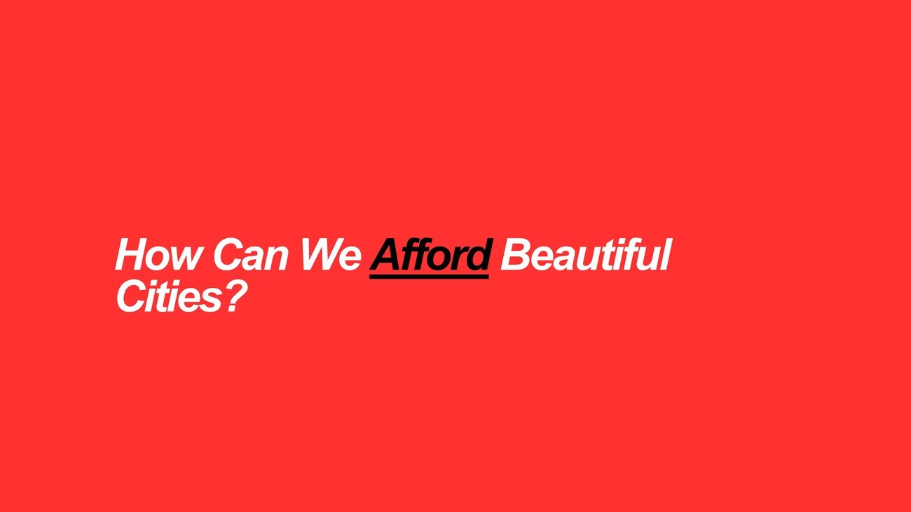 So most of what we consider to be expensive or attractive has very little to do with cost. It has everything to do with the foundations, and I will qualify: I’m an urban planner by training so everything to me looks like an urban planning problem and not an architecture problem. But with that out of the way, I think if we get this right, 80% or 85% of what we perceive as beautiful in the built environment will be covered.