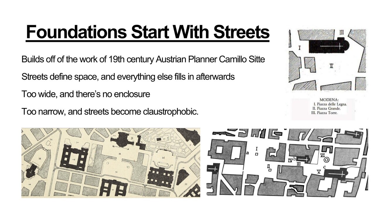Some of you in the room may be familiar with the 19th century urban planner Camillo Sitte, the Austrian planner who had this theory of design that it was the streets and the public realm that shaped buildings and not the other way around. And these are some sketches or drawings rather than engravings that he used to set forth this point. And I use this image just to show that it’s much more important the surroundings that we find ourselves in than individual buildings as a jewel box maybe or a look-at-me showpiece building or a piece of architecture.