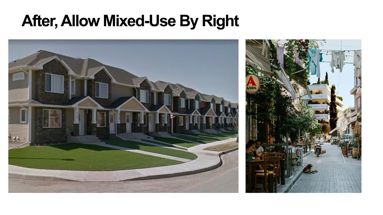 After this, again, we won’t dwell on this too long. Attractive cities, beautiful cities. We have mixed-use. American cities do not get this, right? Greenery, greenery, greenery everywhere, and even pinkery.