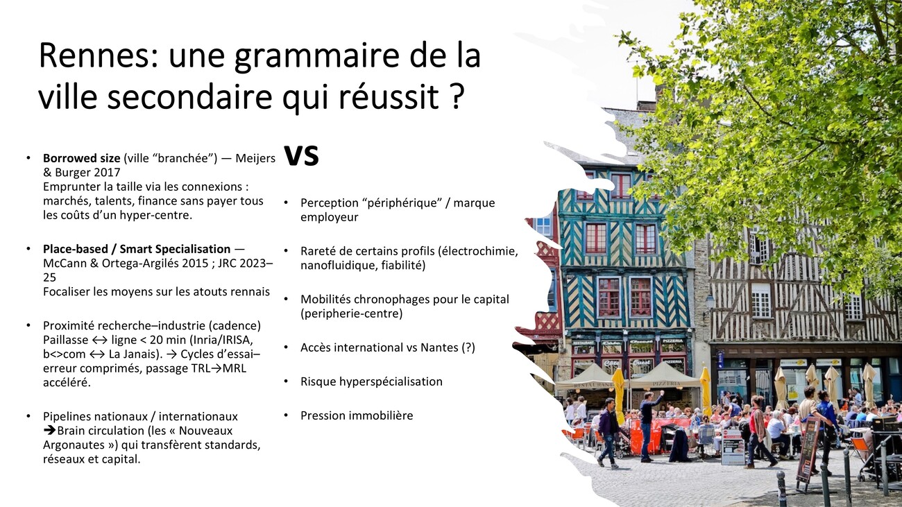 Rennes, c’est une ville qui “ borrow the size ” (emprunte la taille) métropolitaine de Paris, justement grâce à tous ces réseaux, ces moyens de connectivité.
