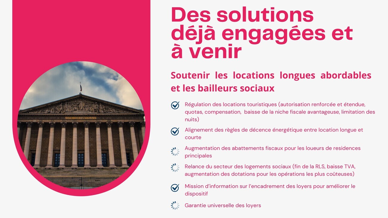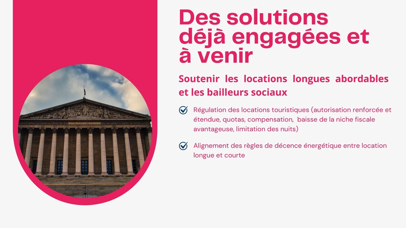 Cette alliance pour le logement parlementaire a permis d’aboutir sur des textes, notamment la régulation des locations touristiques qui maintenant va pouvoir être déployée sur l’ensemble des territoires et avec des outils adaptés à la réalité du terrain. On va avoir un alignement des règles de décence énergétique entre la location longue et courte durée.