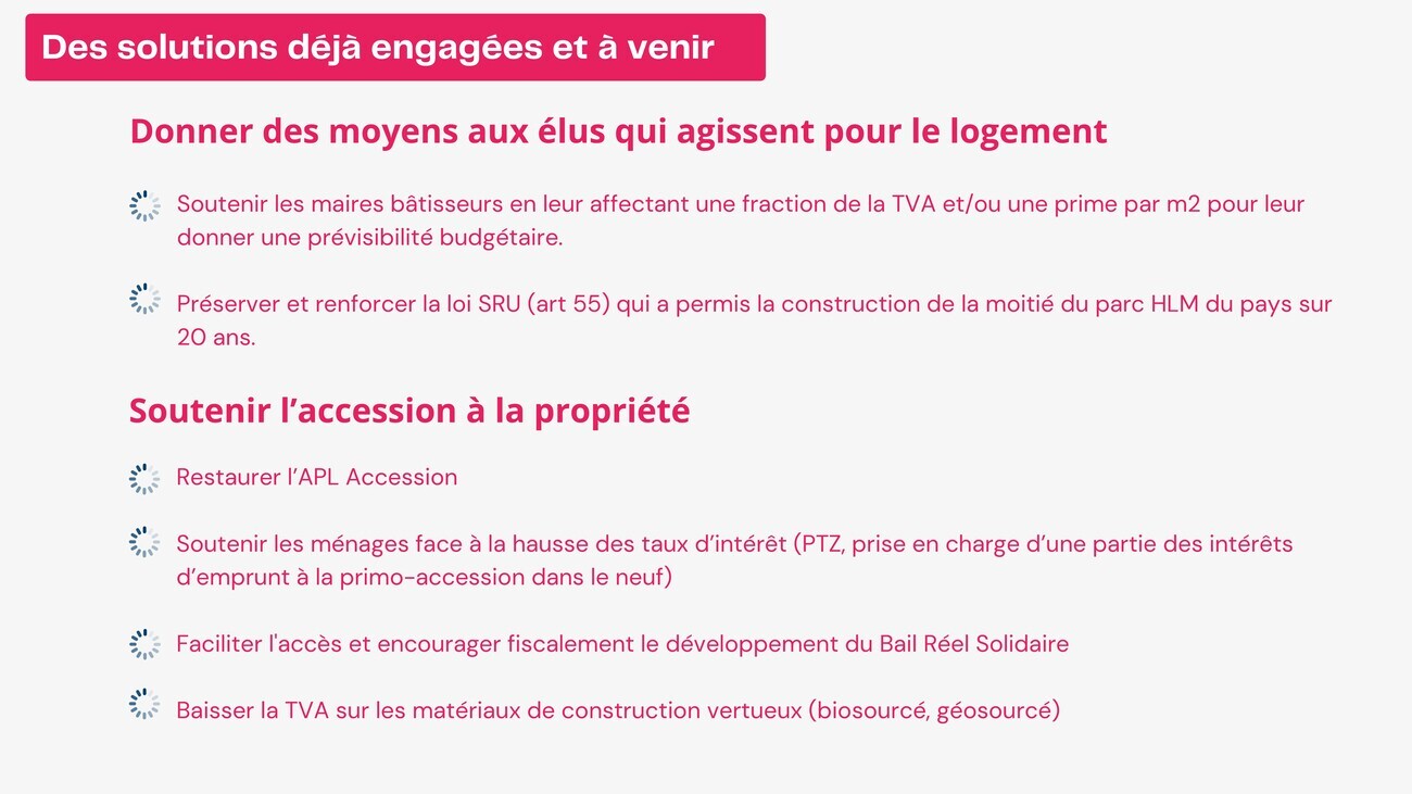 Ensuite, il y a la nécessité de relancer le secteur du logement social avec le soutien aux bailleurs sociaux qui ont été amputés d’un milliard trois par an depuis 2019 et donc qui sont en retrait sur un certain nombre de territoires, notamment les territoires ruraux, mais aussi les territoires où la spéculation va bon train parce qu’ils n’ont pas les ressources pour pouvoir aller sur les opérations extrêmement onéreuses.